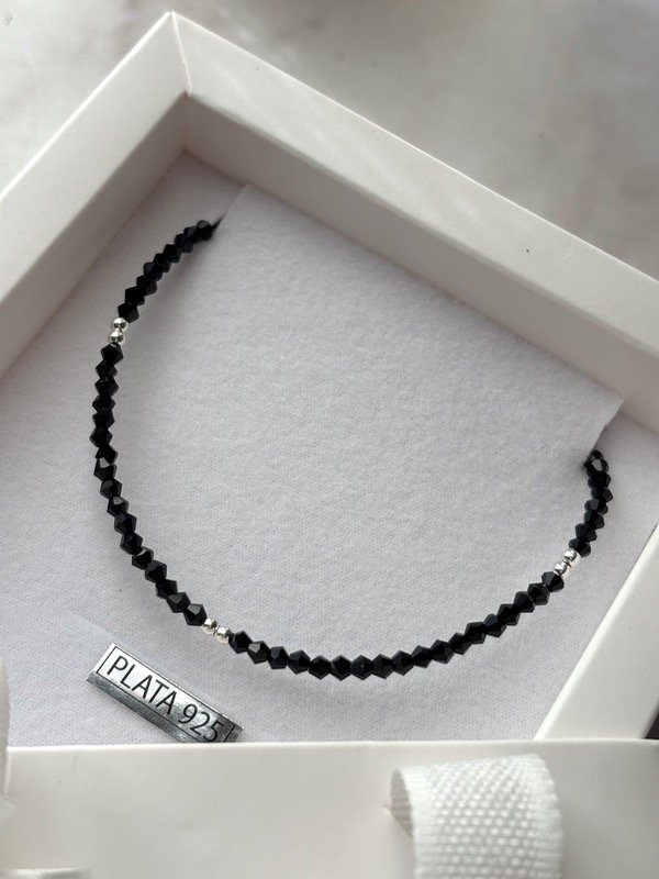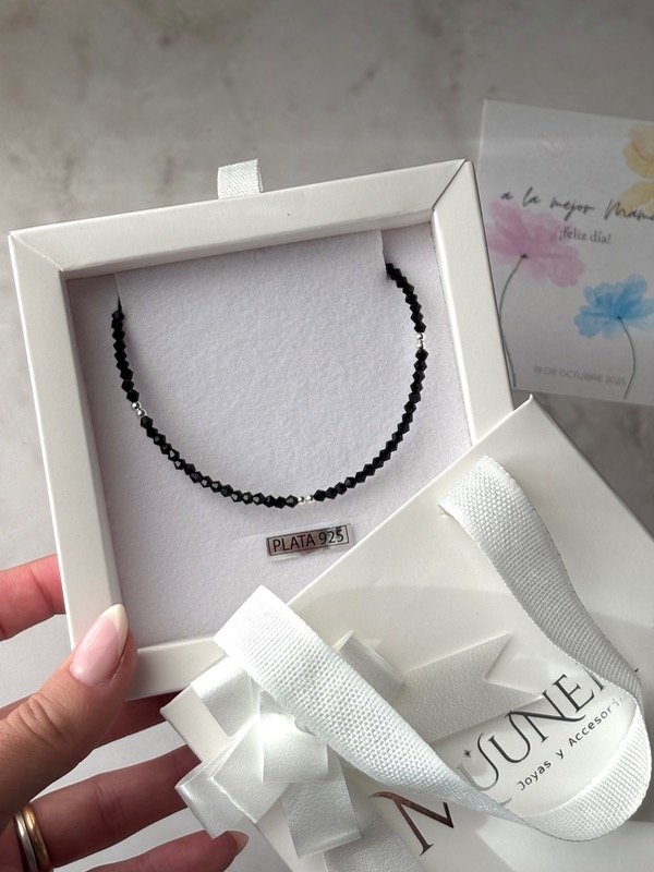 Gargantilla de cristal de roca tornasol con bolitas de plata 925 , de 40cm