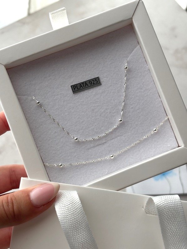 Pulsera bolitas Singapur + cadena bolitas Singapur de 45cm de plata 925