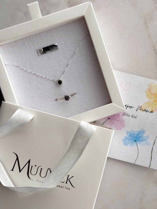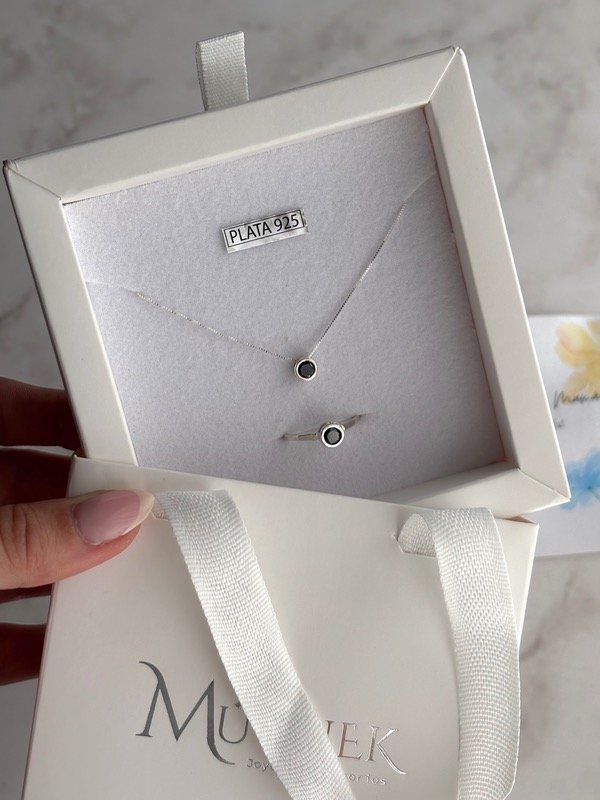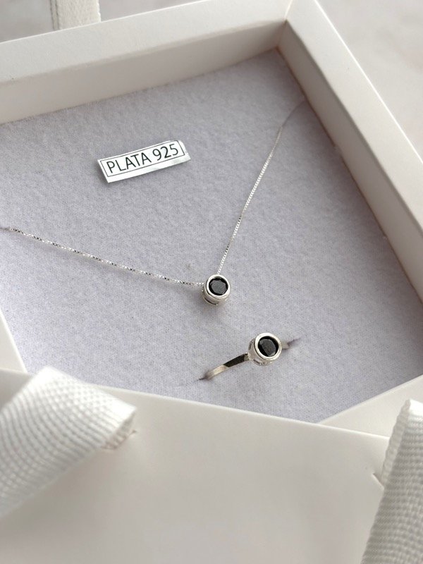 Anillo susanito cubic negro + conjunto cadena y dije susanito pequeño de plata 925
