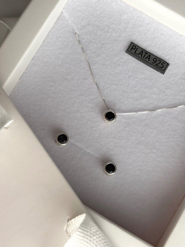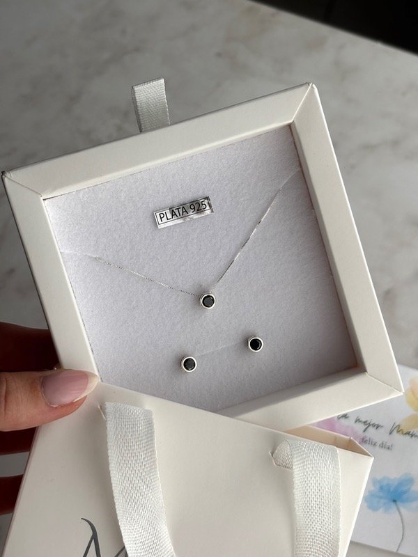 Aros pasantes susanito cubic negro + conjunto cadena y dije susanito pequeño de plata 925