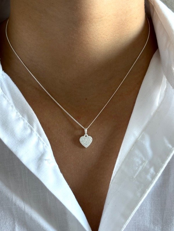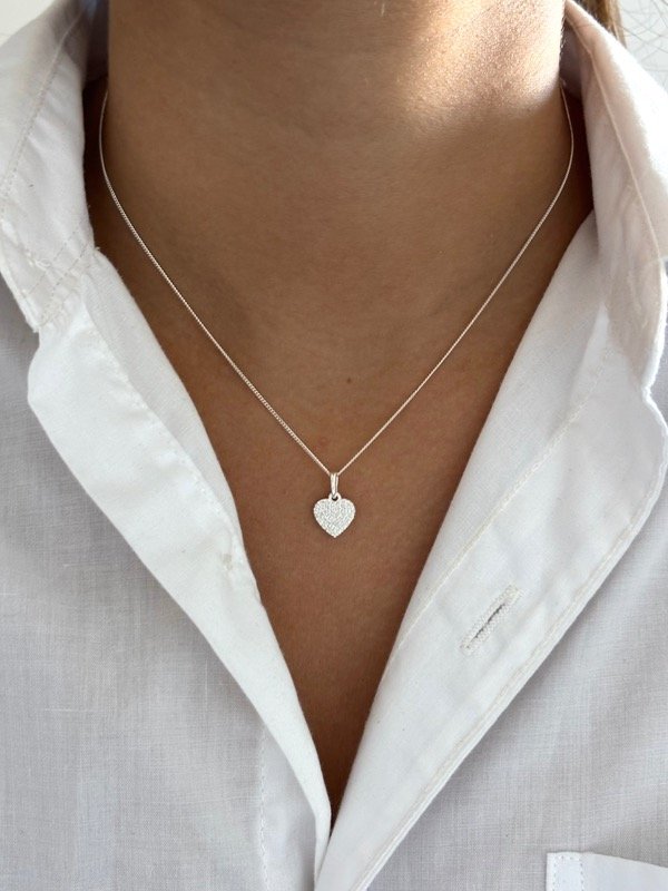Cadena grumet o veneciana + dije corazón micropave plata 925
