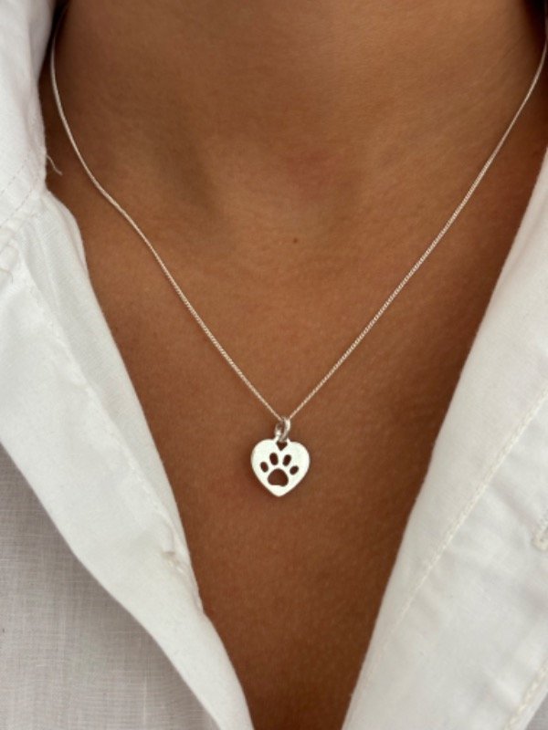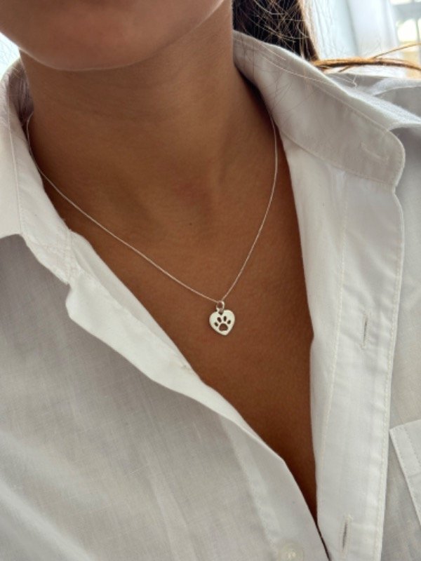 Cadena grumet 45 cm + dije corazon huellita de plata 925