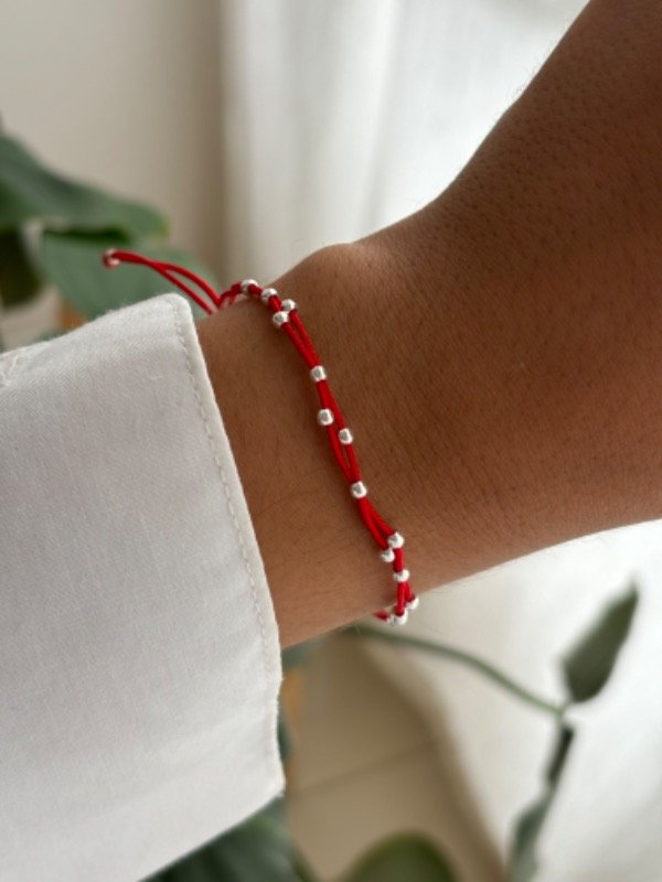 Pulsera de hilo rojo con bolitas de plata 925 regulable