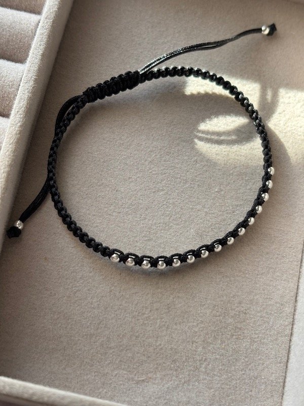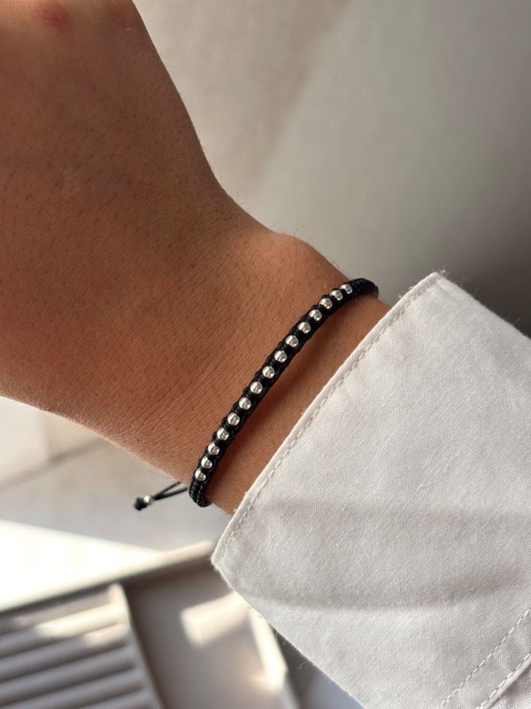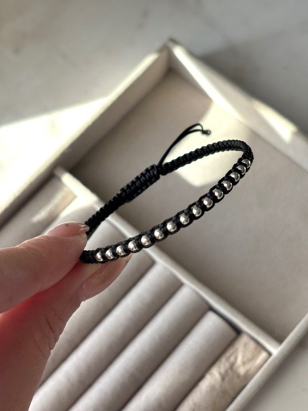 Pulsera macramé regulable con bolitas de plata 925